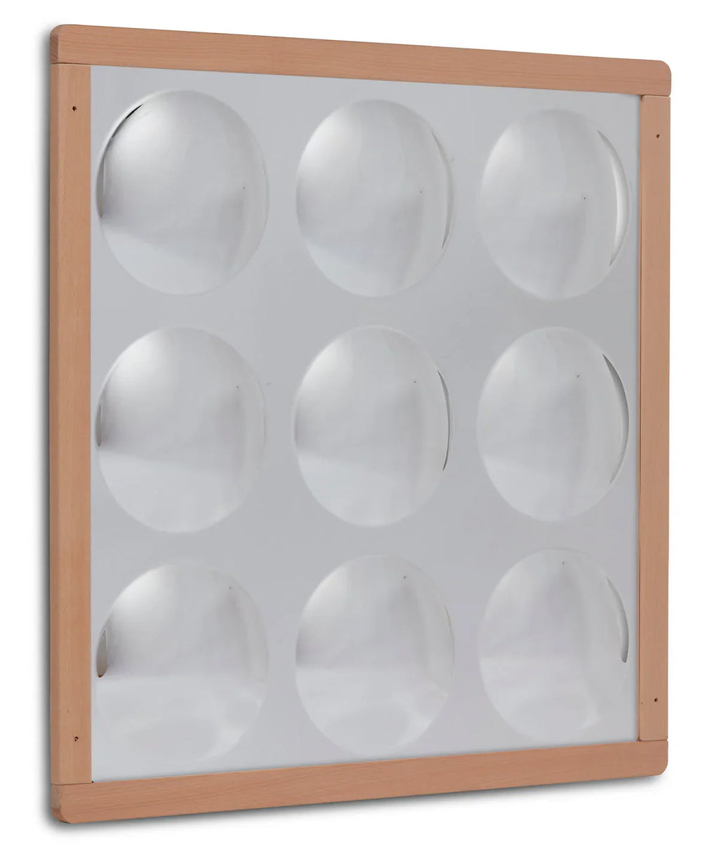 Nurture curiosity and observation skills with this sensory, dome shaped, wooden framed wall mirror. The nine bubble shaped mirrors encourage children to experiment and have fun with reflection.