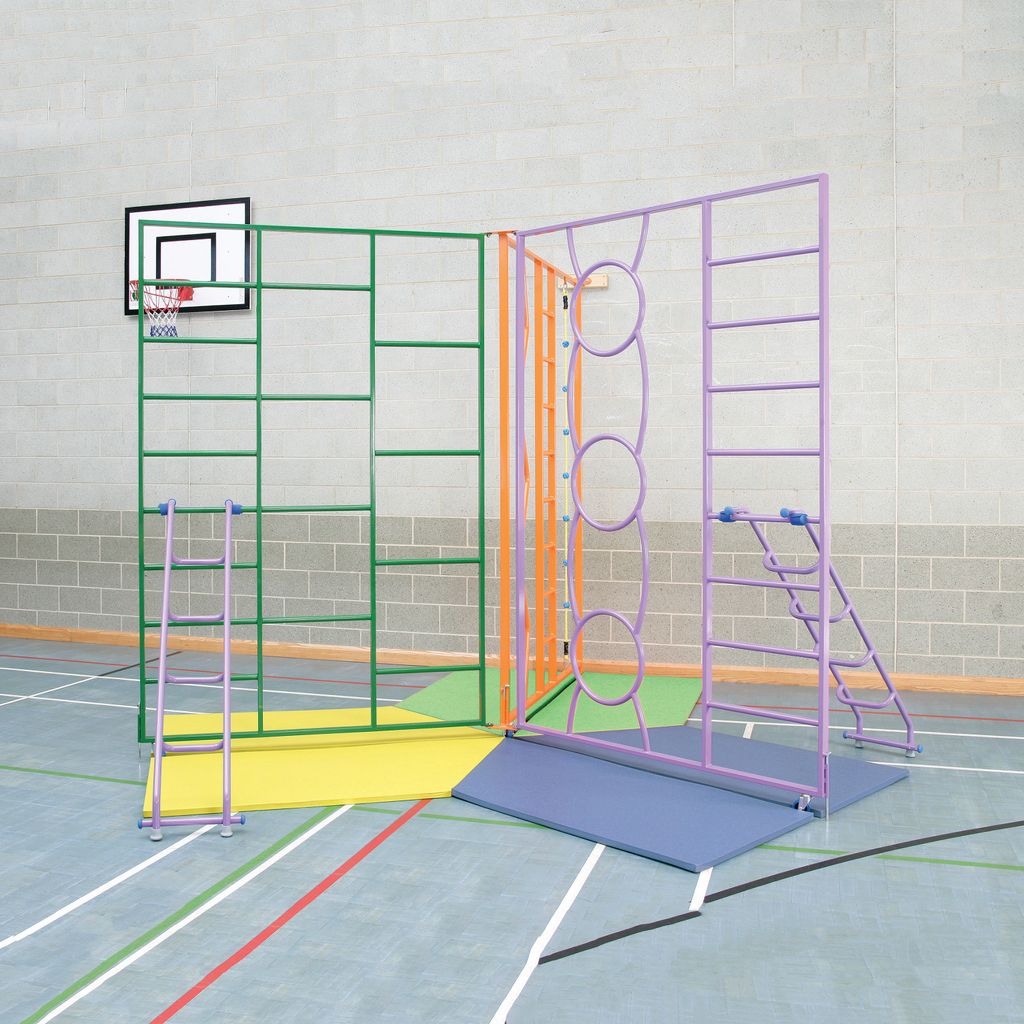 Ideal for use in Key Stage 1 and 2 activities. Colourful powder coated steel frame comprising of 3 sections that can be used in both the 'T' and 'Y', or even 'T/Y' position. Braced with two steel ladders for additional stability. When folded the frame occupies an area of 2m wide x 24cm deep. Gate width 1.83m. Available in 2 heights 2.4m or 2.75m. Please order additionally GY36700-INS if installation is required.