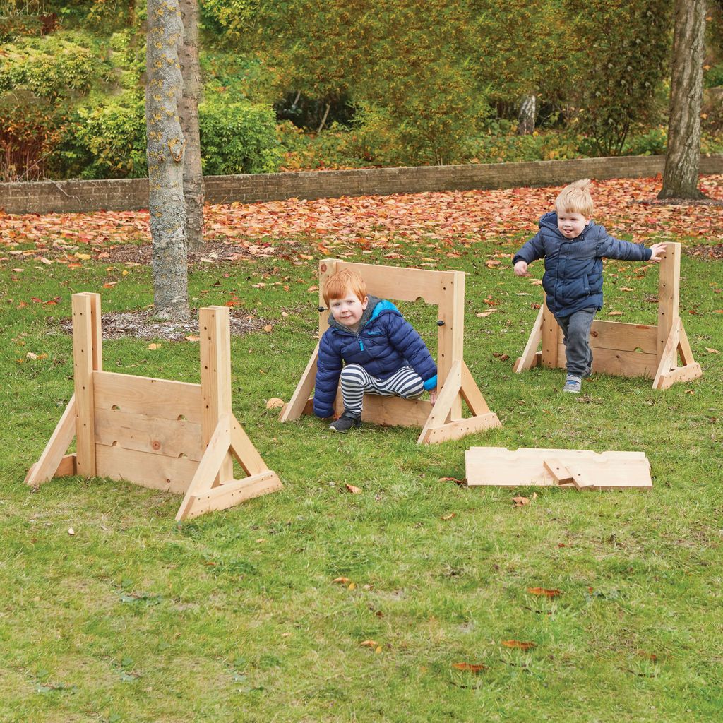 Designed with an easy to use slot system that allows the height of the walls to be varied and provide a challenge. Set of 3. Requires assembly. Size: 75 L x 50 W x 62cm H.