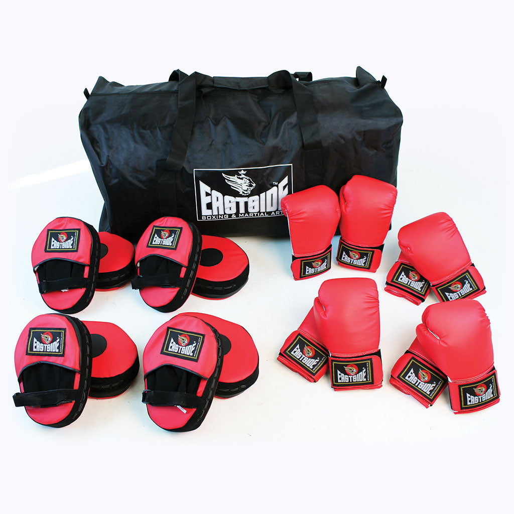 Set contains 4 Active Training 10oz Gloves, 4 Active Hook and Jab Pads and a holdall.