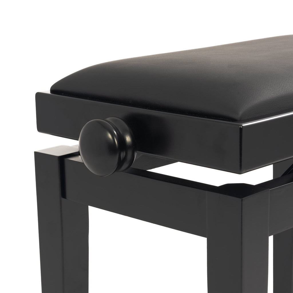 CGM 125E height adjustable piano stool - Black satin, black simulated leather