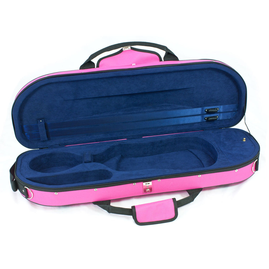 • Oval series plush lined, padded, moulded interior with 2 bow holders and neck strap