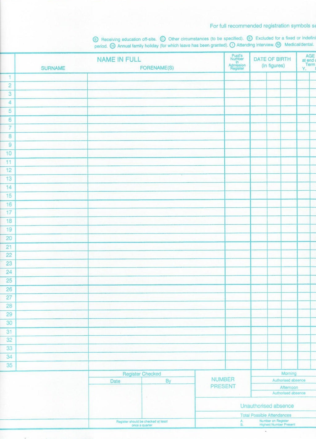 Philip & Tacey School Attendance Register 35 Names Pack of 10