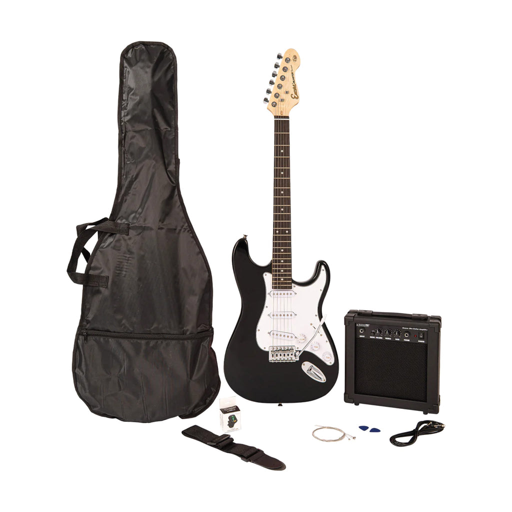 • Clip-on guitar tuner, spare set of strings, guitar picks and guitar lead supplied