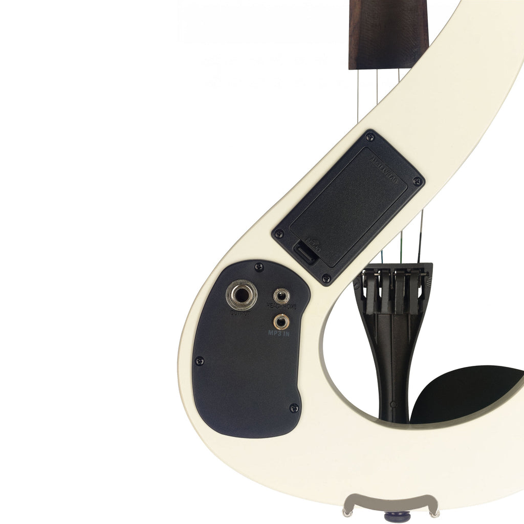 - Includes soft case with carry strap, bow, rosin, headphones, 9V battery and 6.35mm jack lead