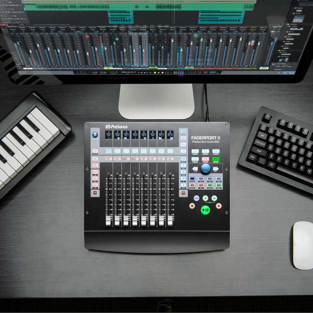 - 8 touch-sensitive faders and 8 Scribble Strip displays