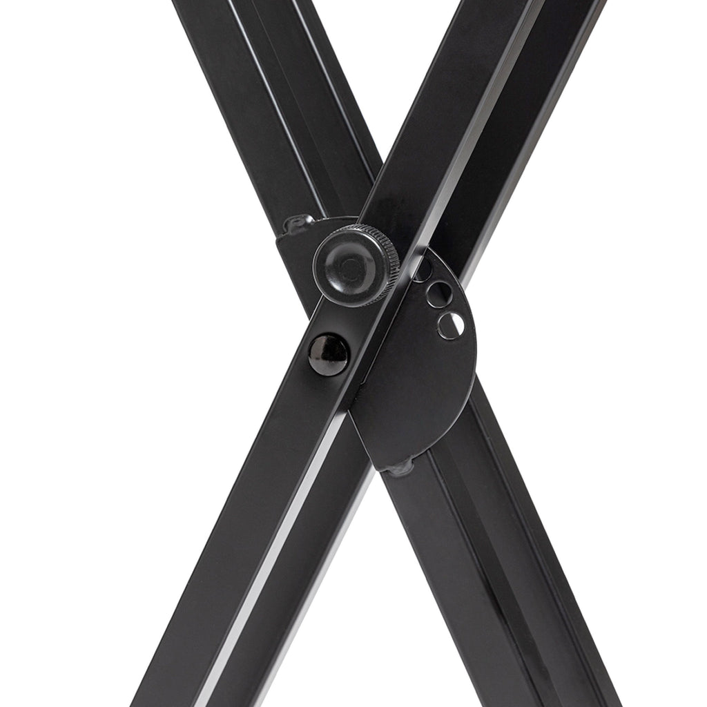 - Robust height adjustable double braced X frame stand