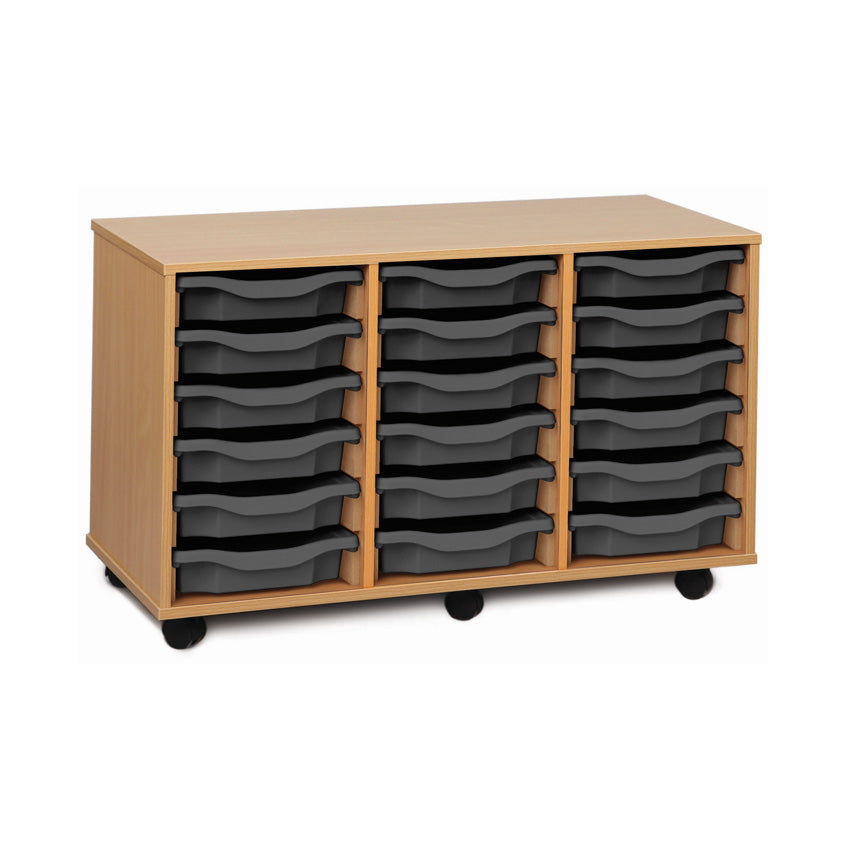 Monarch shallow tray storage unit - 18 trays (3 x 6) beech