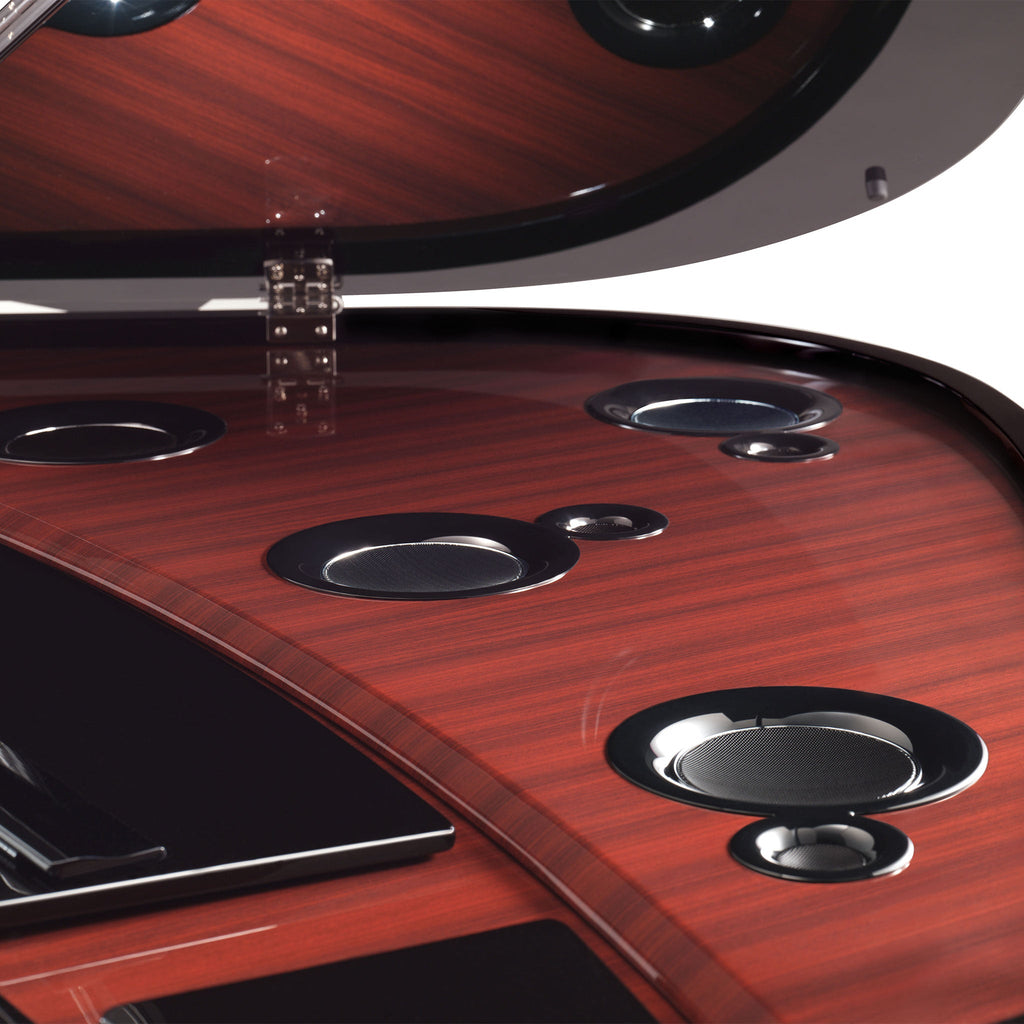 - Soundboard resonator and special speakers project sound in the same way as an acoustic piano