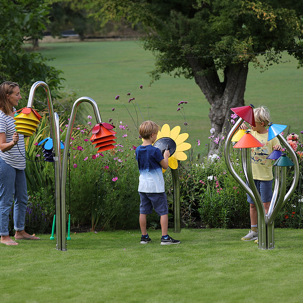 Nature-themed ensemble featuring a sunflower, harmony bells, and liberty bells