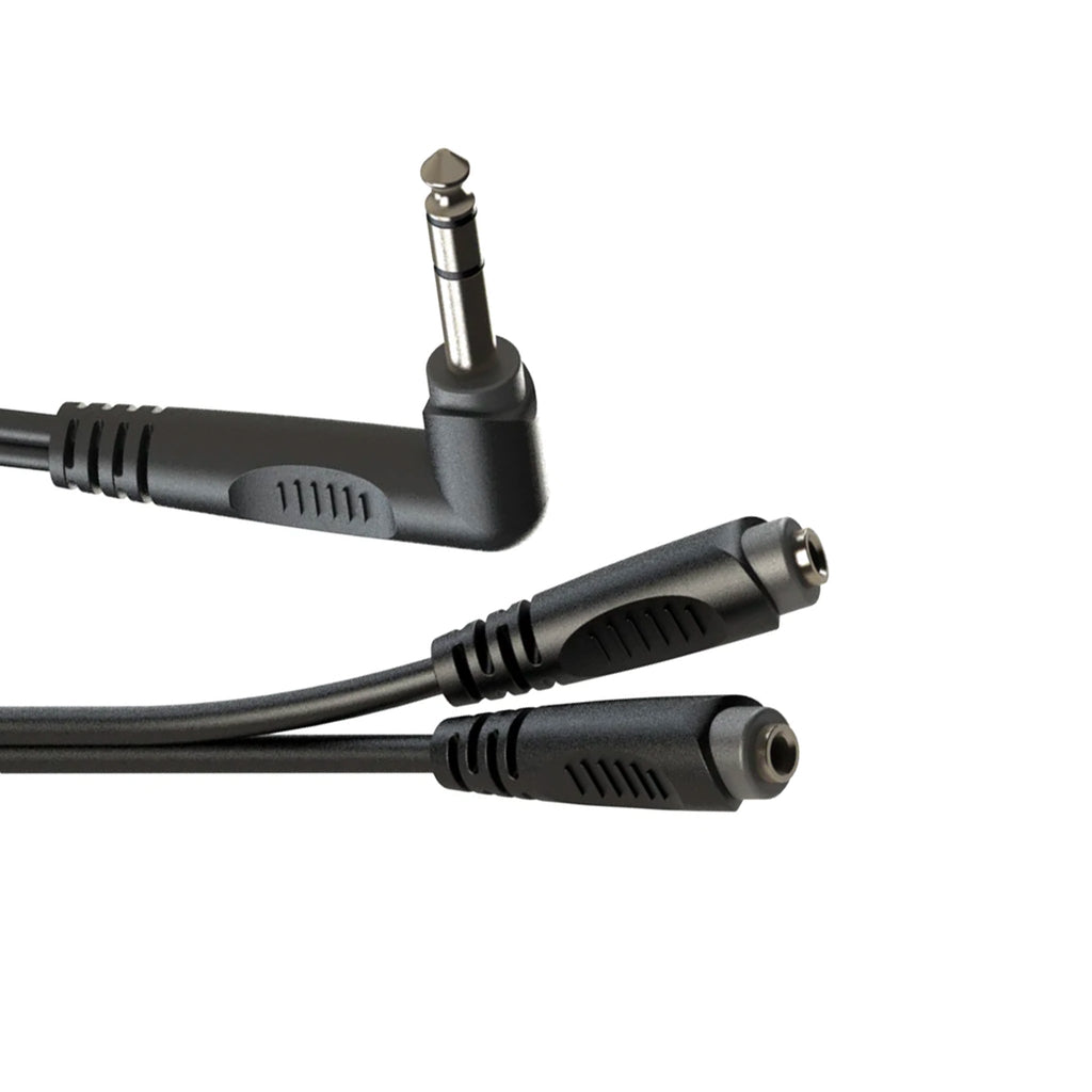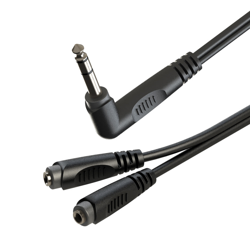 - Audio Splitter: 1 x large 6.3mm stereo right angle jack to 2 x small 3.5mm stereo sockets