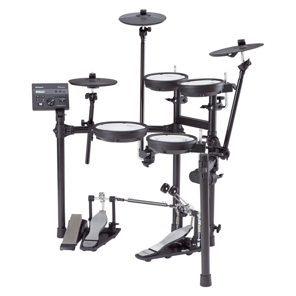 - Snare and tom pads with Roland’s legendary double-ply, tension-adjustable mesh drumheads