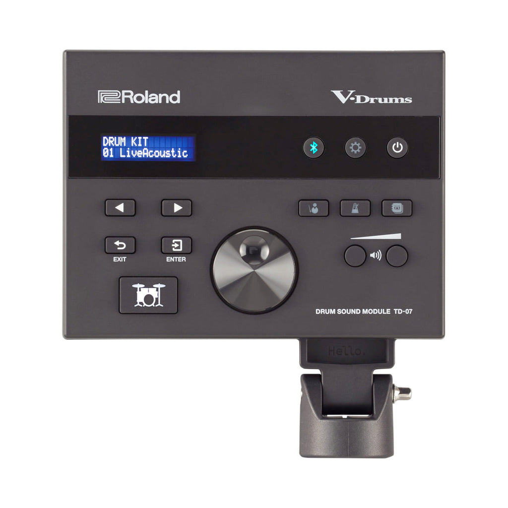 - TD-07 module with 25 preset kits, 25 user kits, and 143 instruments