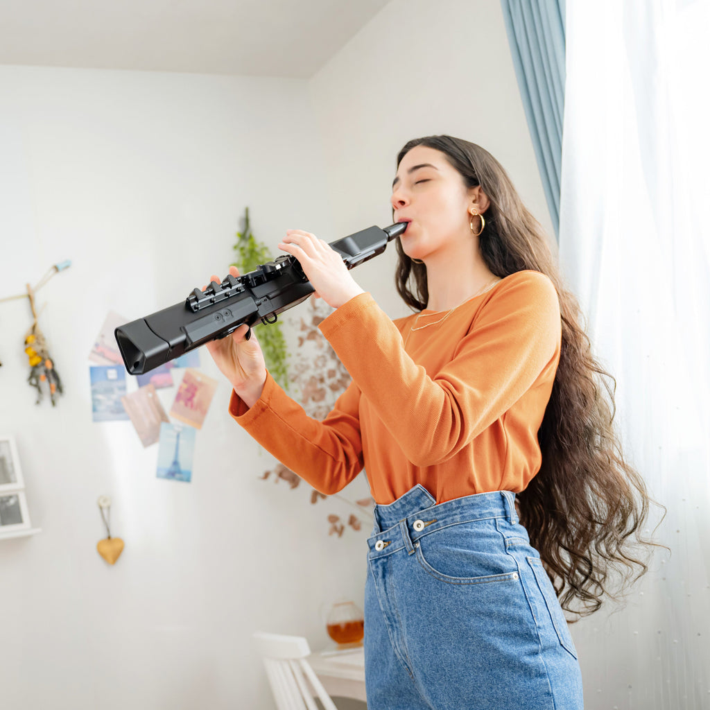 - Fully plastic body and recorder style mouthpiece