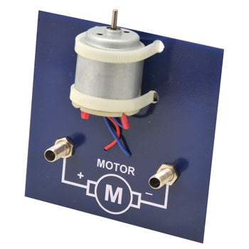 A low voltage DC motor with series resistor to limit current consumption on a board.