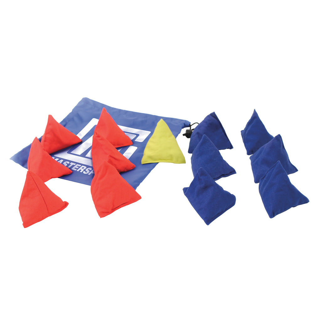 A simple and inexpensive way to introduce the game. Set contains 6 blue and 6 red pyramid bean bags, a yellow pyramid bean bag (for the jack) and a drawstring storage bag.