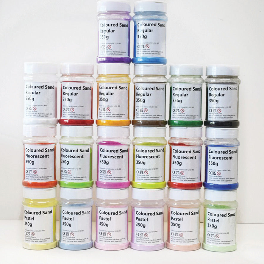 Add depth and texture to your creations with these coloured sand shakers. Its excellent lightfastness means the dye won't rub off on your hands. Simply sprinkle onto a pre-glued surface to add texture and colour to models, collages and diagrams etc.
