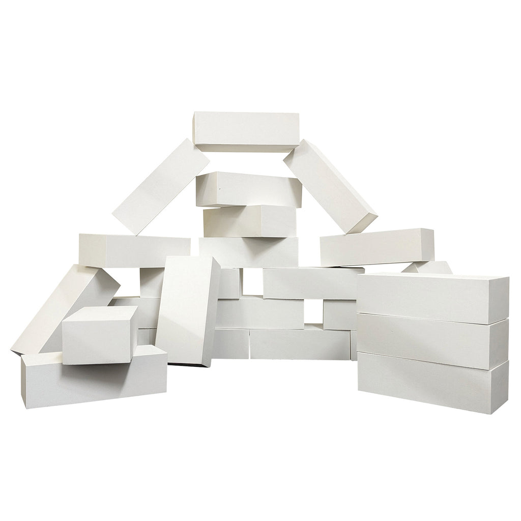 Set of 25 easy to clean, soft foam bricks. Children can create a winter wonderland, igloo or a castle with these white EVA foam bricks. Tested from 0m+ which makes them ideal for any nursey and school. Comes with a non woven storage bag, made from recycled materials.
