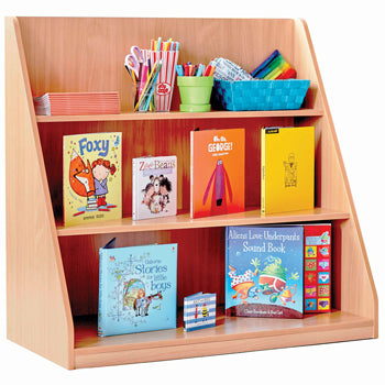 1040 x 502 x 1000mm height Single sided book storage with angled and curved side panels. All units are fully manufactured and assembled in the UK Made to order and supplied fully constructed Manufactured from 18mm beech or maple MFC. Kinderboxes are supplied without trays. Please order your trays using the codes on page 1402 or 1403 in the ESPO catalogue. Before placing your order see Furniture Delivery Information