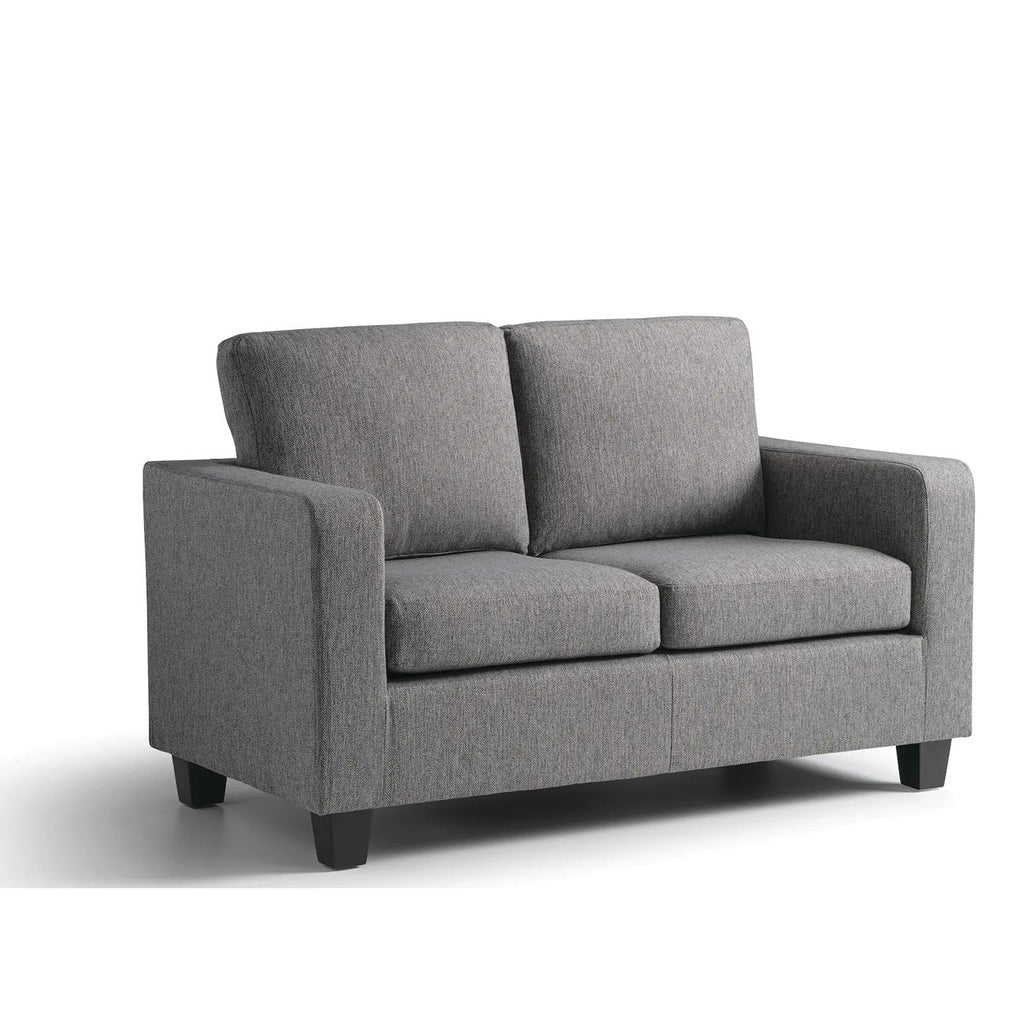 Hard wearing fabric. Sturdy and durable due to its strong wooden feet. 1370 x 860 x 750mm height, 440mm seat height. Charcoal grey.