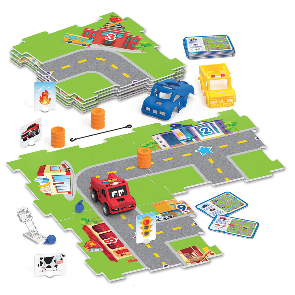 In this interactive playset, kids embark on thrilling coding missions as they transform their versatile robot into a police car, fire engine, or construction vehicle. Each challenge card presents a unique rescue scenario, requiring them to strategically code the robot's movements to navigate obstacles and complete the rescue.