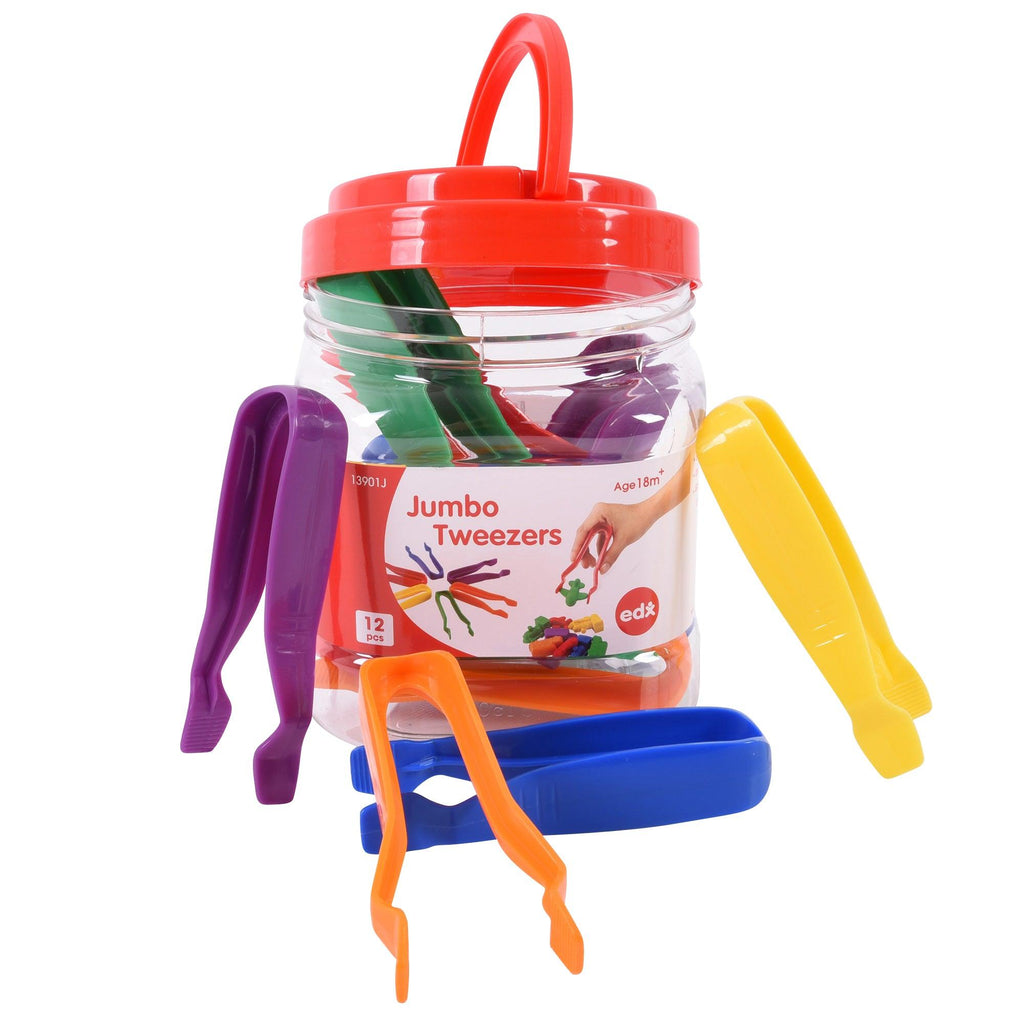 The edx education Jumbo Tweezers are a jumbo size for small hands to use easily. This simple and brightly coloured tool allows children to pick up a range of different sized objects for observation whilst improving fine motor skills.