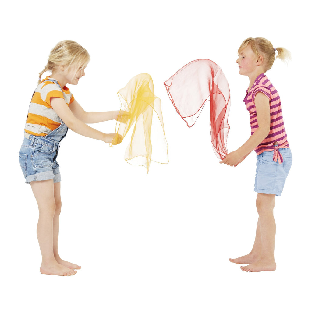 Swing the scarves in the air and see them fall. Use them as magic scarves or play at ghosts by putting them over your heads.