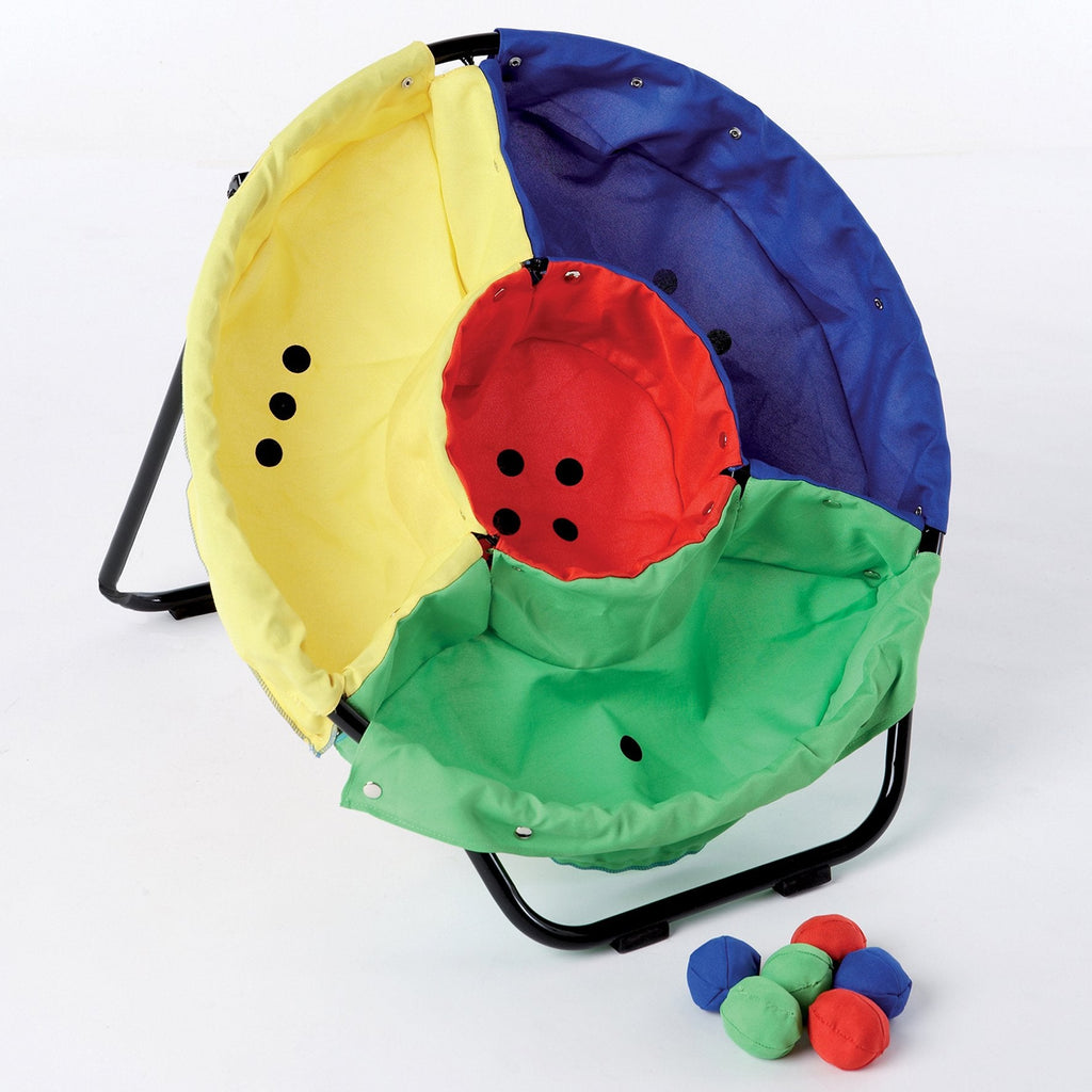 When playing the Throwing Game, you can agree on a point system where hitting the coloured bags will score different points according to the level of difficulty.