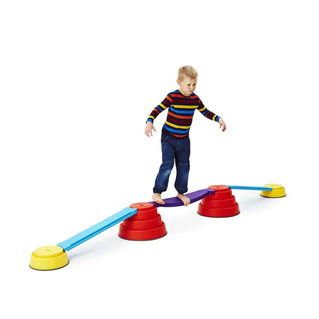 The Wobbling Plank is a challenging new element for Build N’ Balance®. The plastic plank is mounted on a metal axle and rocks gently sideward when the child is balancing on it. The degree of rocking is restricted to enable small children to safely balance on the Wobbling Plank. The Wobbling Plank is made from plastic mounted on a 12 mm steel rod and has nylon bearings with rubber shock absorbers.