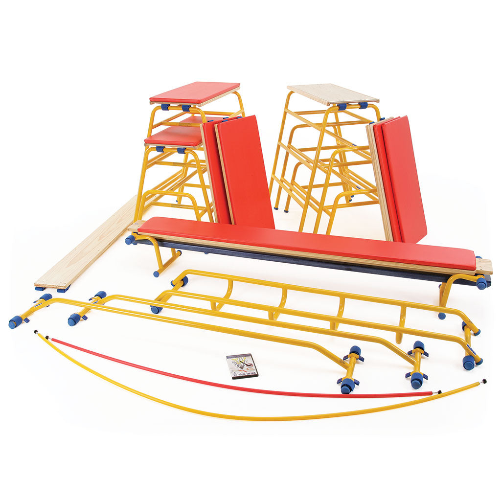 The Gym Time© Complete Pack provides a comprehensive range of apparatus for Key Stages 1 and 2, offering various working heights for all manner of Linking Equipment pieces. The included Gym Time© Support Pack, that includes music, helps non-specialist teachers to deliver innovative, challenging and fun gymnastics activities.