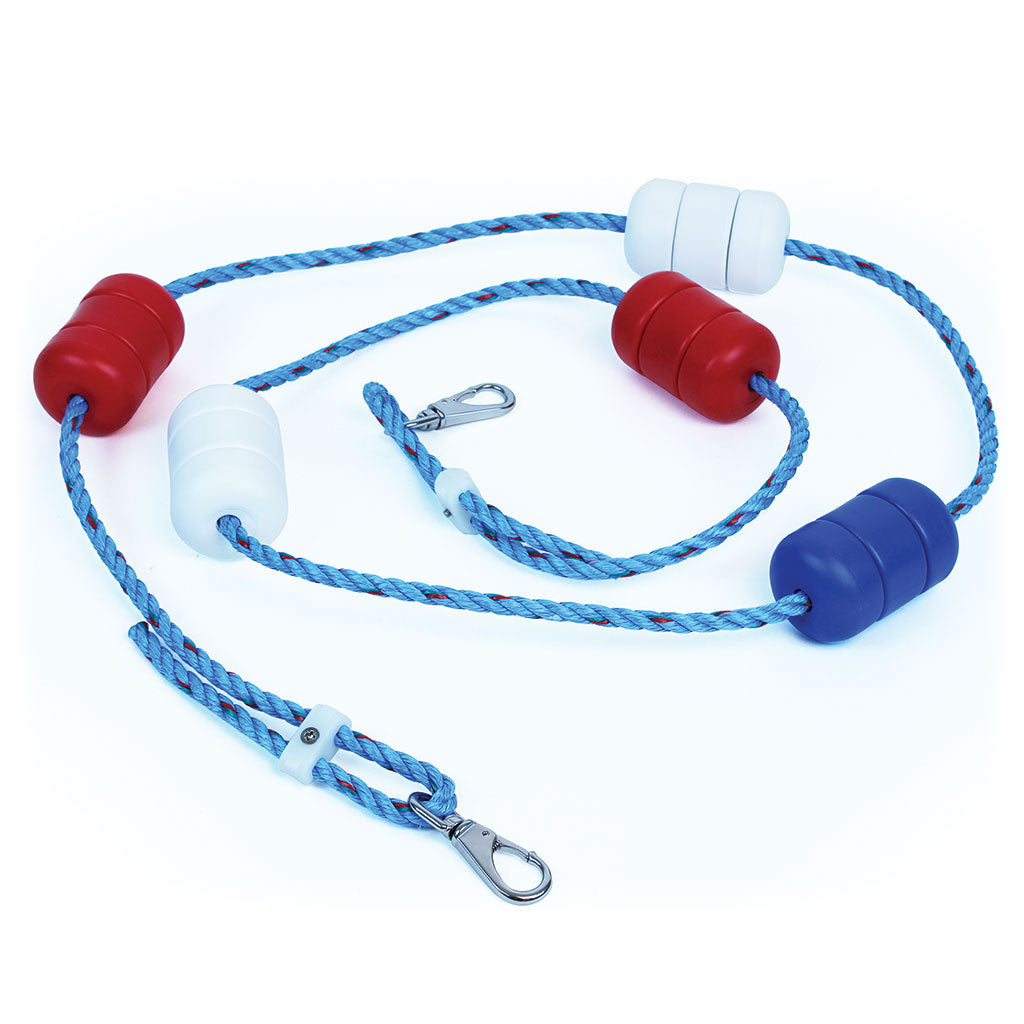 Used for sectioning off areas of the pool. Polypropylene rope (dia. 12.5mm) supplied with handilock floats in Blue, Red and White, clamp and snap hook end fixings. Available in a 25m length or a specify length to suit requirements. Please specify length when ordering.