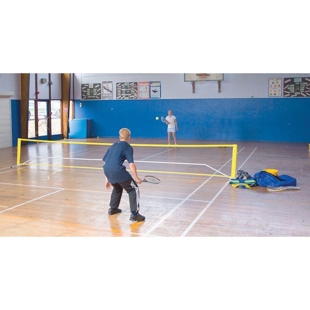 Can be set up and taken down in minutes; the metal frame is numbered for easy assembly. The full net height is approximately 155cm for Badminton, removal of one pole each side will set the height to 80cm for Mini Tennis. Supplied in a carry bag. Available with a 3m or a 6m wide net.