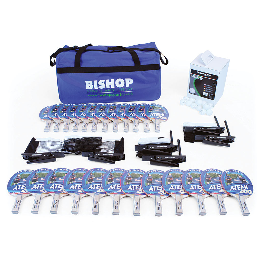 Designed to accommodate the needs of educational establishments, youth clubs and recreational users. Available as a Starter set with 12 Bats and 60 Balls or a Class Pack with 24 Bats and 144 Balls, both sets supplied with 3 Post/Net Sets and a holdall.